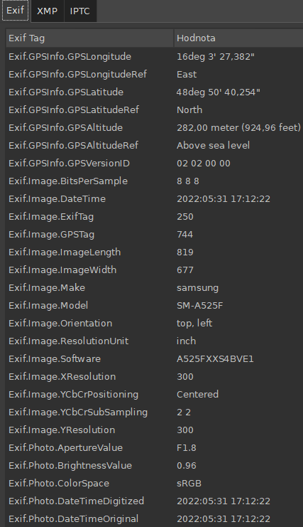 Obrázky a videá zase dnes spravidla obsahujú súradnice miesta, kde boli zhotovené a názov prístroja, ktorý ich vyhotovil: