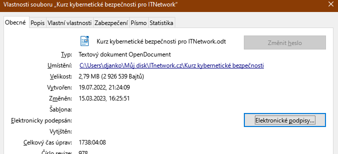 Ďalšie riziko predstavujú súbory, s ktorými bežne pracujeme. Väčšina formátov dokumentov (DOCX, ODT, PDF, HTML...) obsahuje tzv. metadáta, teda vedľajšie informácie v nich uložené. (Predpona meta je z latinčiny a znamená "vedľajšie"). Typicky obsahujú meno autora, príp. prihláseného užívateľa, dátum vytvorenia a zmeny, názov programu, ktorý ich vytvoril: