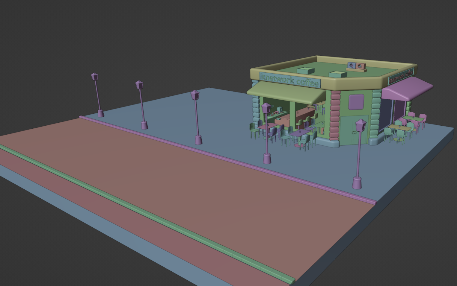 7. diel - Modelujeme kaviareň v Blendi - Budova, ulice a lampy