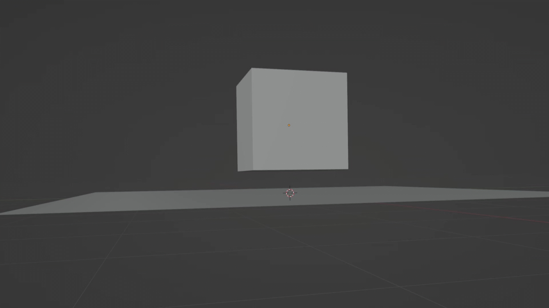 Než začneme, vložíme si objekty Cube a Plane. Objekty nájdeme v menu Add a kategórii Mesh, ktoré si otvoríme pomocou klávesovej skratky Shift + A. Objekty si vložíme a objekt Cube si pomocou klávesu G posunieme nad objekt Plane. Ďalej si zväčšíme objekt Plane pomocou klávesy S: