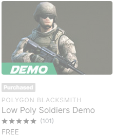 Low Poly Soldiers Demo a klikneme na ikonku: