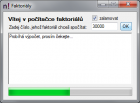 Program slúži na výpočet faktoriálu zadaného čísla. Po zadaní čísla a kliknutí na "OK" sa vykoná výpočet. Teda, pokiaľ užívateľ zadá prirodzené číslo, inak sa objaví chybová hláška. Ak zadá číslo väčšie ako 100 000 oznámi mu program, že výpočet bude trvať dlho, či chce pokračovať. V priebehu výpočtu sa zobrazuje hláška "Prebieha výpočet, prosím počkajte ..." a taky je dole umiestnený progress bar, ktorý ukazuje priebeh (aj keď nie úplne dokonale-začiatok je oveľa rýchlejší ako koniec). Na výpočet sa používa BigInteger. Je to má druhá okenné aplikácie v C #.