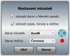 V nastavení aplikácie možno zaškrtnúť, či sa má ukazovať ikona spustené aplikácie na hlavnom paneli, či sa má zobrazovať opis akcie, počet minút a sekúnd a tiež tu je možné nastaviť vzhľad minutiek.