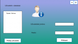 Keď aplikáciu spustíte, tak sa zobrazí úvodná obrazovka, kde sú zobrazení používatelia, ktorí sú v databáze uložení, a táto stránka slúži jednak pre prihlásenie užívateľa alebo pre presmerovanie na stránku, kde je možné pridať nového používateľa.