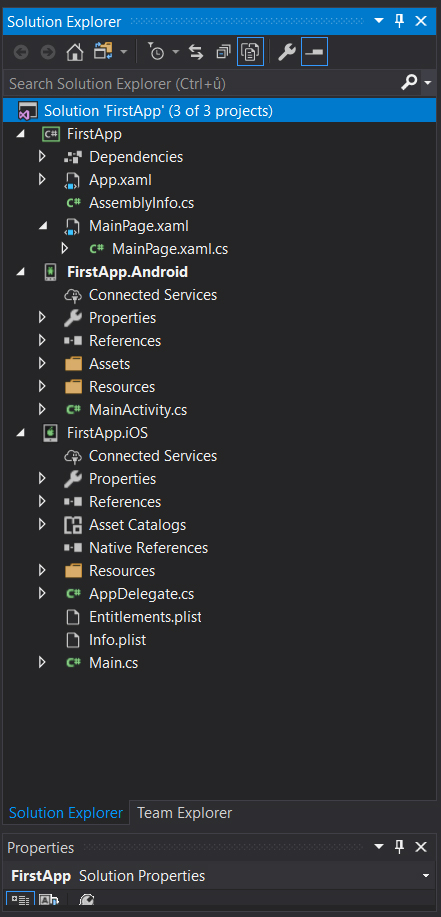 Štruktúra Xamarin projektu