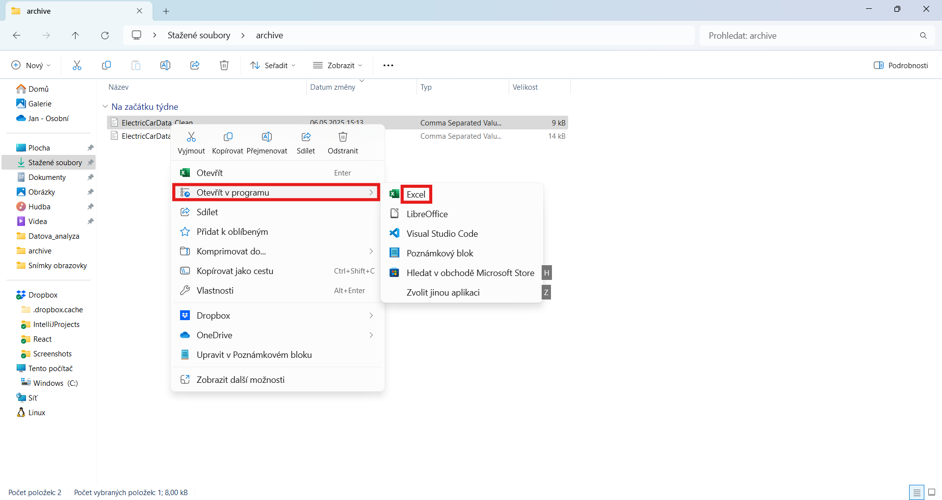 CSV (Comma-Separated Values - hodnoty oddelené čiarkou) je obľúbený formát vďaka svojej jednoduchosti a kompatibilite s mnohými nástrojmi. Napríklad ho možno jednoducho otvoriť v aplikácii Excel.
