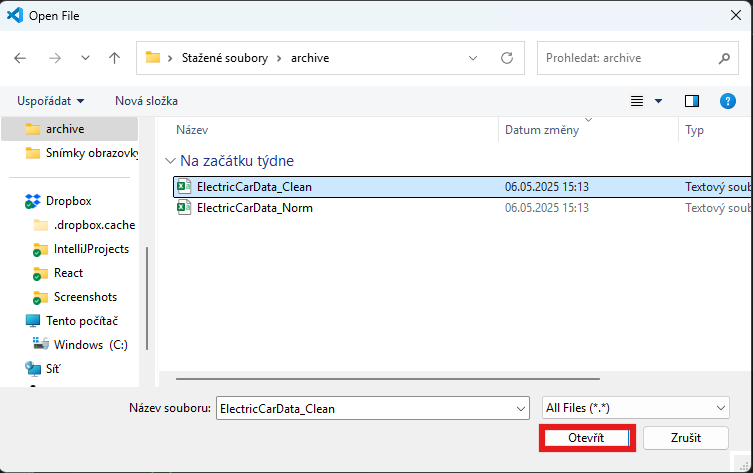 Vyberieme požadovaný súbor, ktorý chceme otvoriť (ktorý sme si predtým rozbalili):