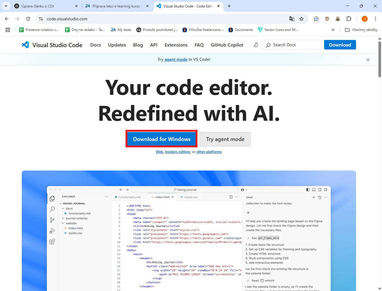 Ešte než sa pustíme do práce s reálnymi datasetmi, stiahneme si editor Visual Studio Code (VS Code), ktorý nám umožní prehľadne zobraziť štruktúru dát v súboroch. Stiahneme ho zo stránok "Microsoftu".