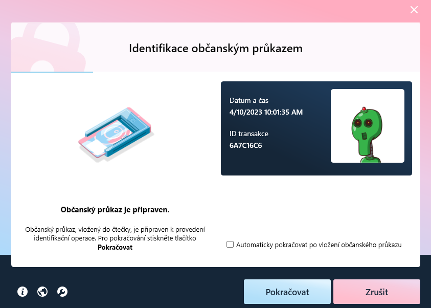 Ukážka overenia totožnosti u certifikovanej autority pomocou eObčianky: