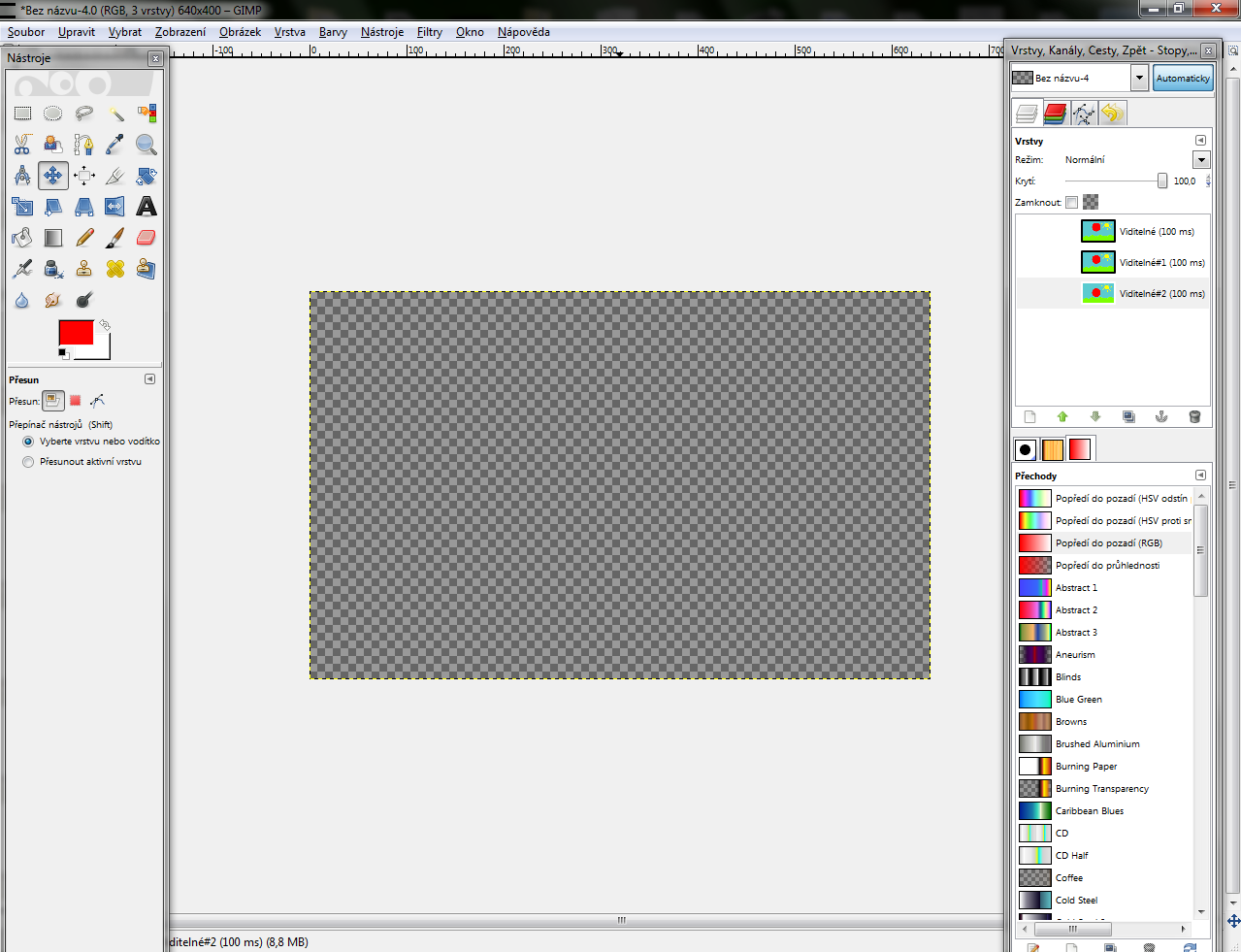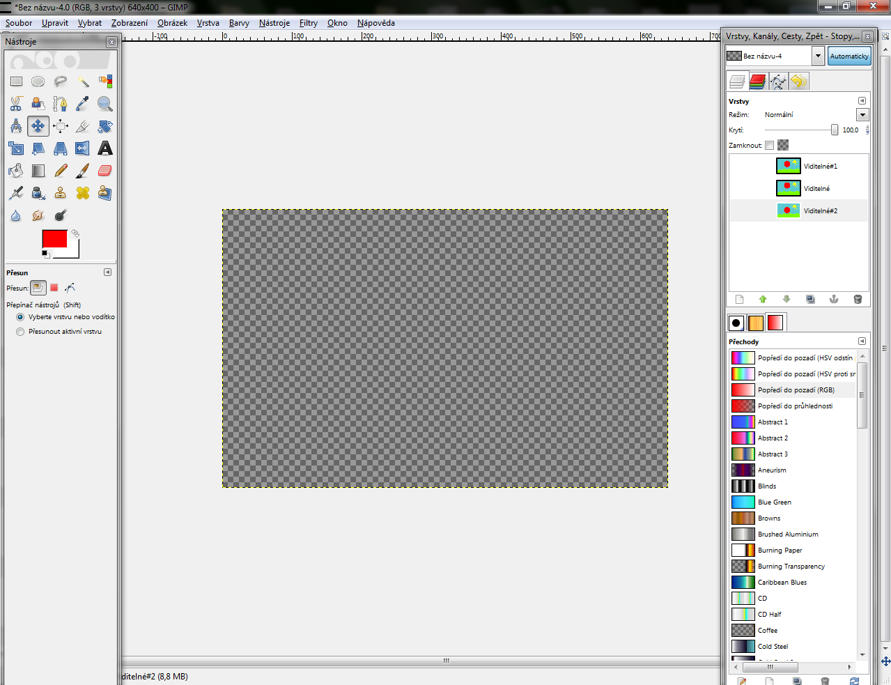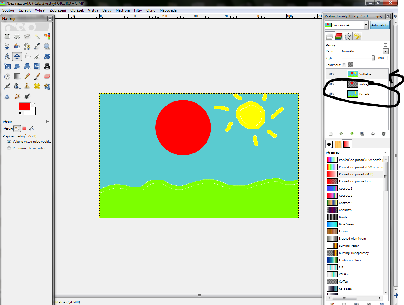 vrstva čo sme robili) posunieme úplne hore a vyberieme si nástroj "Posunúť"