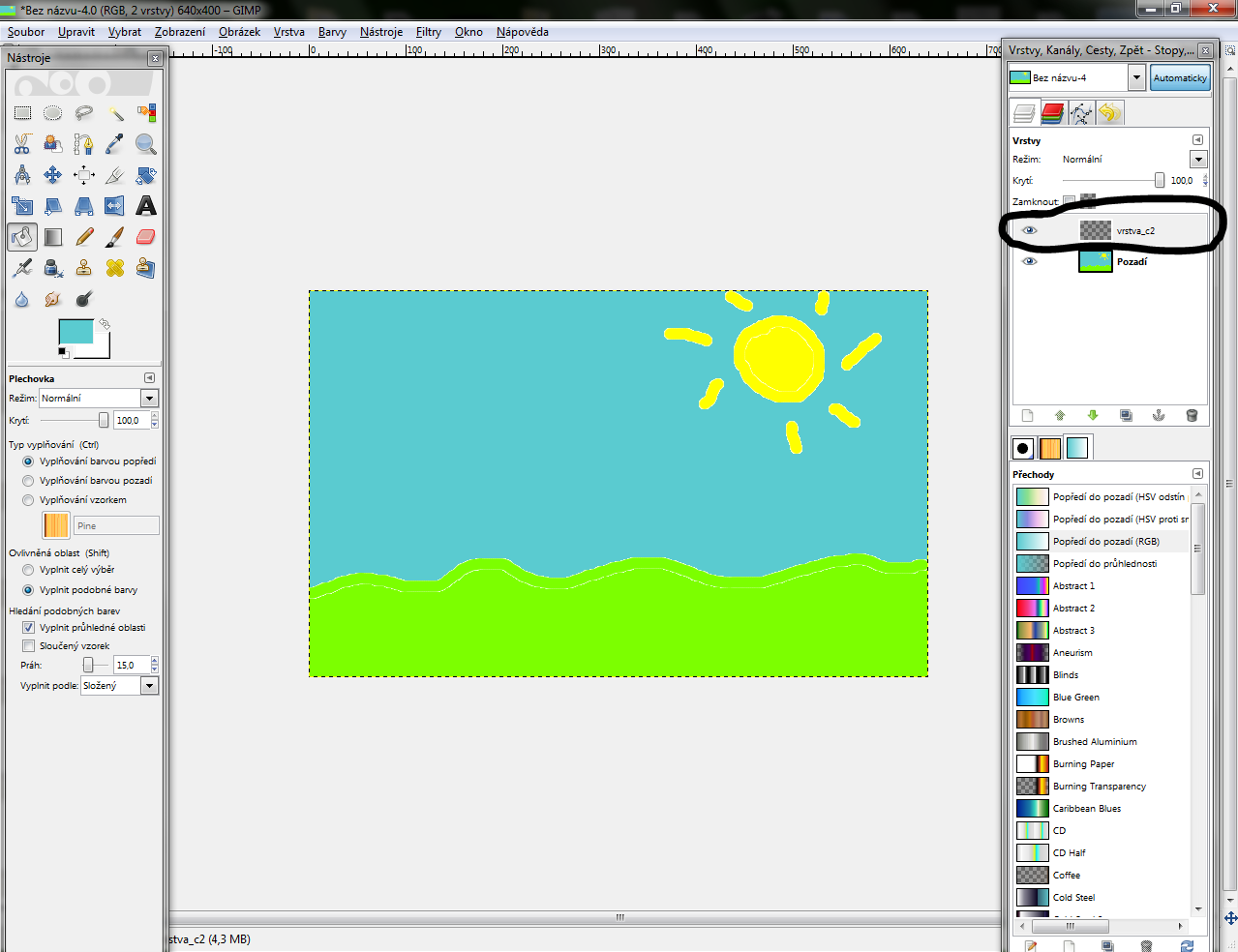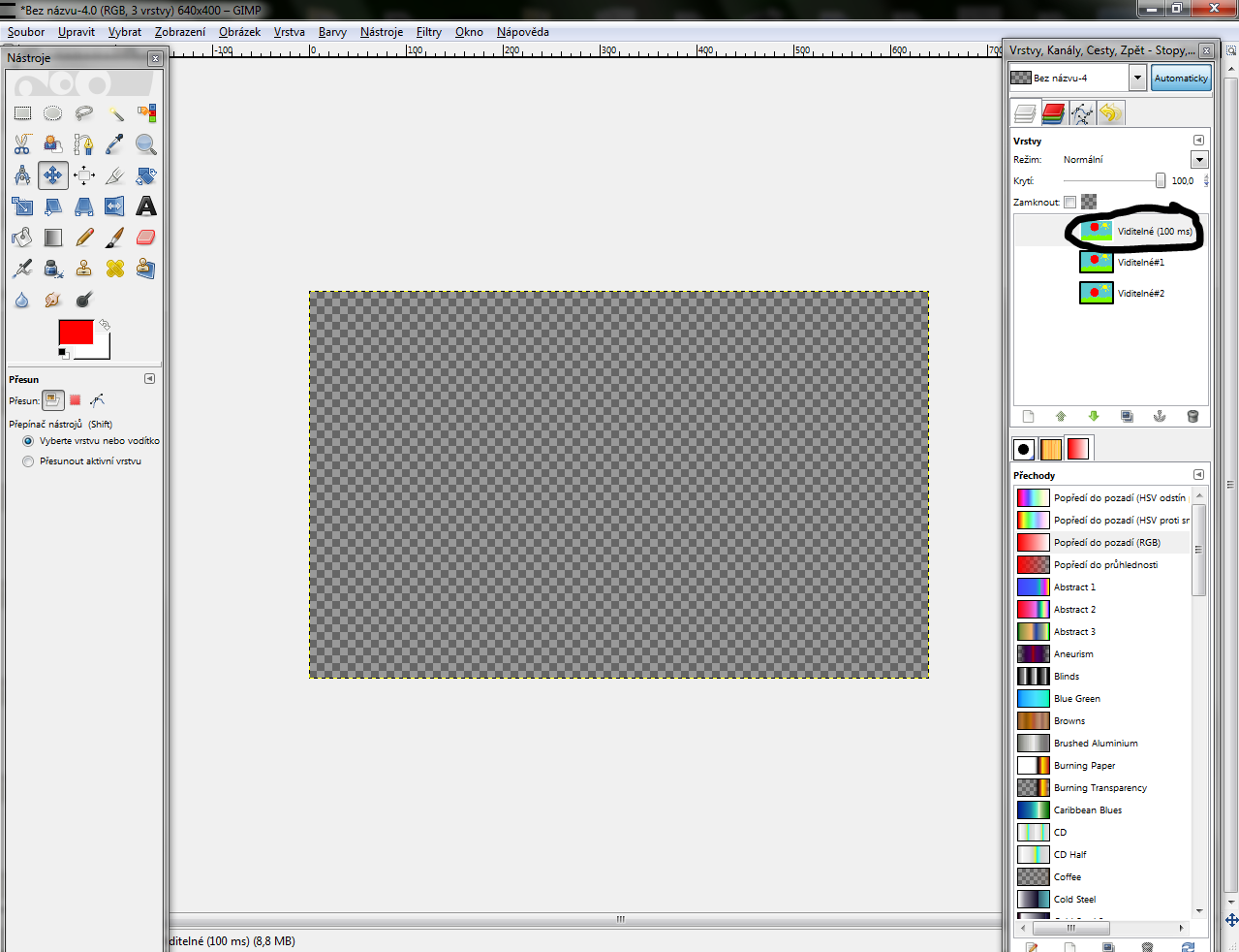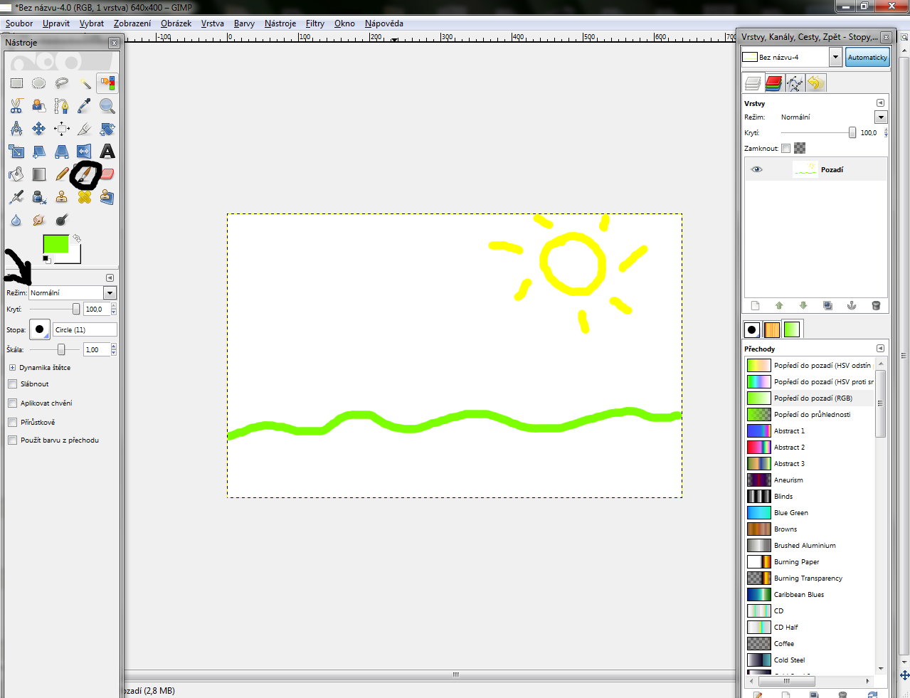 Tak a máme tam prázdnu vrstvu do ktorej budeme zase čmárať, takže si na ná kliknite ľavým tlačítkom myši (tlačidlom myši) a presuňte ju nahor, pokiaľ tam už nie je.