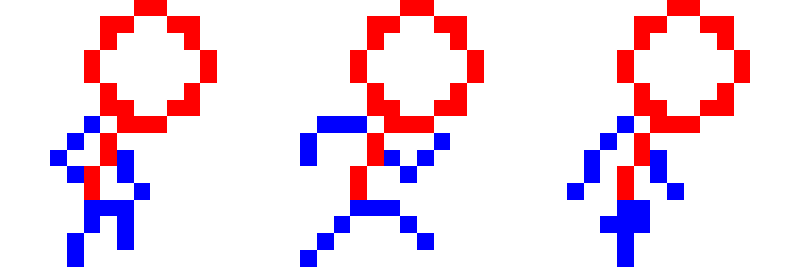 Najtypickejšie animovaný sprite je chôdza hlavné postavičky hry, na ktorú sa teraz pozrieme krok po kroku.