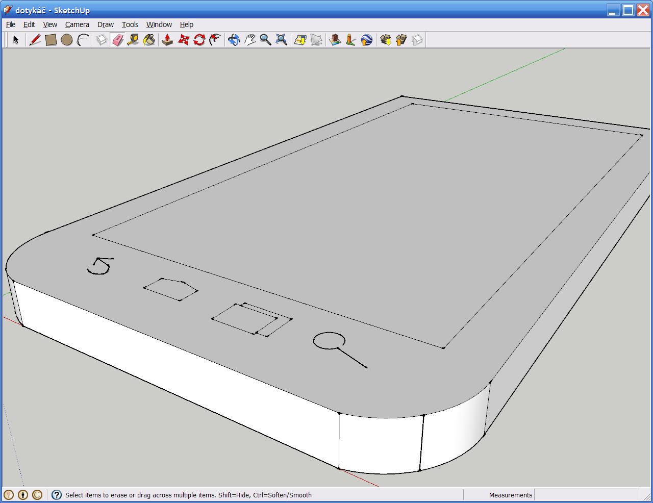upravíme rohy telefónu. Pomocou nástroja Arc urobíme na dolnom ľavom rohu