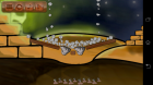 - Stavebná časť: Po spustení leveli budete mať k dispozícii nejaký rozpočet a okienko, z ktorého môžete vyťahovať bloky. Na hornej strane displeja sú výstražné ukazovatele upozorňujúce na blížiace sa nebezpečenstvo. Keď budete mať rozostavené bloky tak, aby červíky bezpečne mohli prejsť na druhú stranu, kliknite na tlačidlo "Play".
