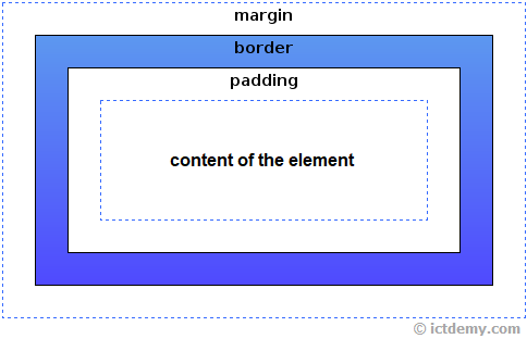 Rozdiel medzi paddingom a marginom sa vysvetľuje na tzv. boxmodeli (do slovenčiny sa zvykne prekladať ako "krabičkový model"), ktorý vyzerá takto: