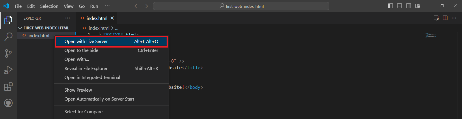otvoriť s live serverom (Open With Live Server), ktorú nájdete ako