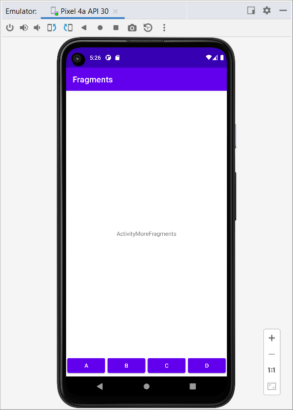 tlačidlom otvoríme aktivitu ActivityMoreFragments s piatym