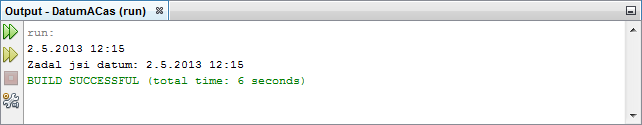 Vypíše sa iba škaredá textová reprezentácia objektu. Akonáhle chceme inštanciu Calendar vypisovať, potrebujeme na to tzv. formatter. Pridáme import java.text.SimpleDateFormat a po vytvorení kalendára vytvoríme formatter s nasledujúcim formátom: