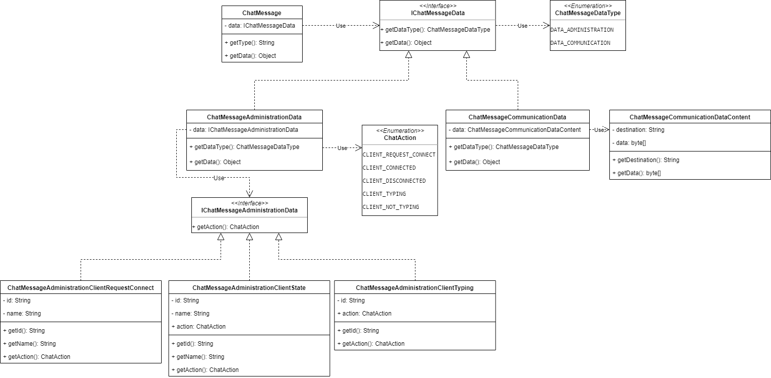novú triedu ChatMessage, pomocou ktorej sa budú posielať všetky