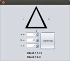Program Slúžte na výpočet obvodový a obsahovo základných rovinných matematických telies. Výpočty je možné spraviť pre trojuholník, štvoruholník, rovnobežník a kružníc. Program je napisane v jazyku JAVA a GUI je spravené pomocou Java Swing. Zdrojový kód je k dispozícii na Stiahnutie.