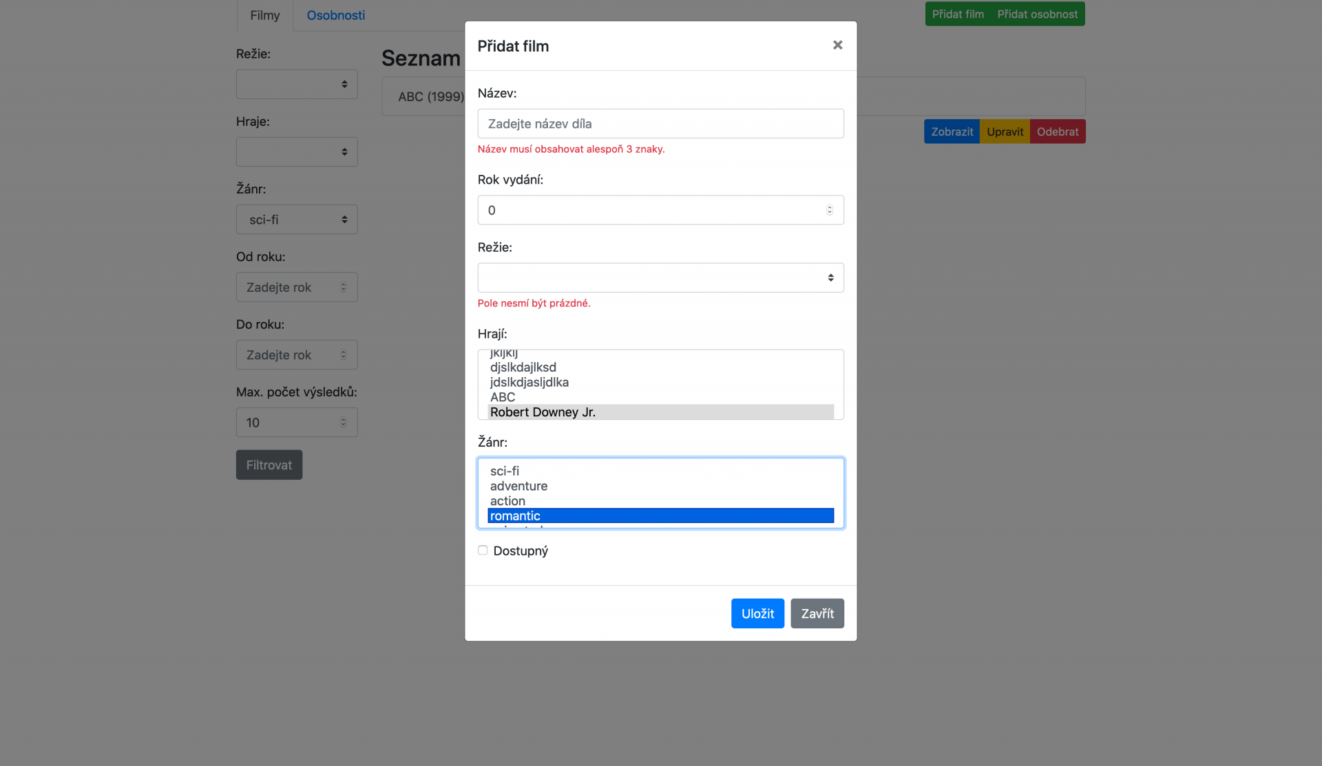 14. diel - Databázový klient v Angular - Pridanie filmov