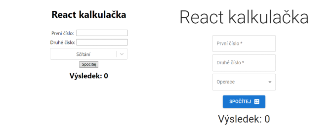 V dnešnom tutoriále pokročilého Reactu aplikujeme získané znalosti štylovania pomocou knižnice Material UI na pridanie štýlov do aplikácie kalkulačky. Využijeme na to kód kalkulačky vytvorenej v kurze Základy Reactu. Porovnanie pôvodnej a naštylovanej kalkulačky bude vyzerať takto: