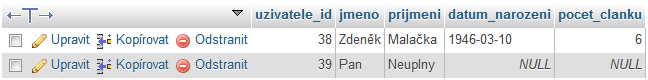 Ak napr. príkazom INSERT vložíme používateľa a vyplníme