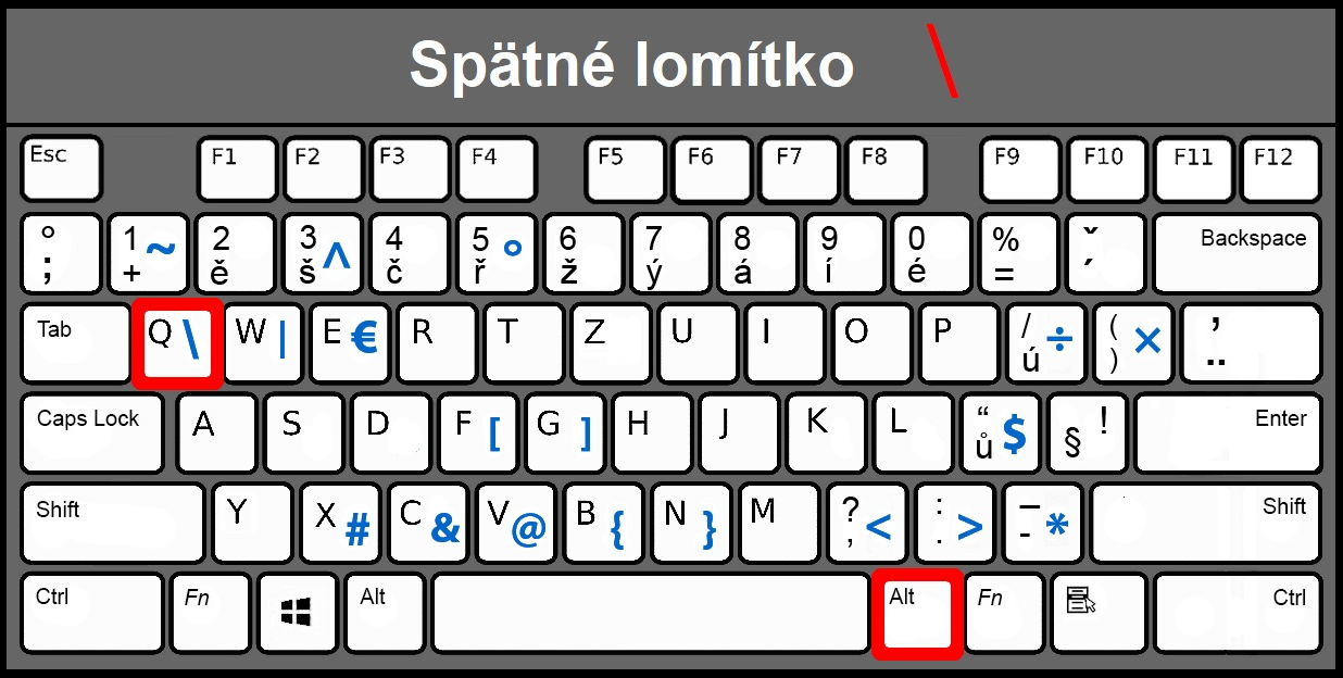 Spätnú lomku môžeme na slovenskej klávesnici napísať pomocou pravého Alt a písmena Q: