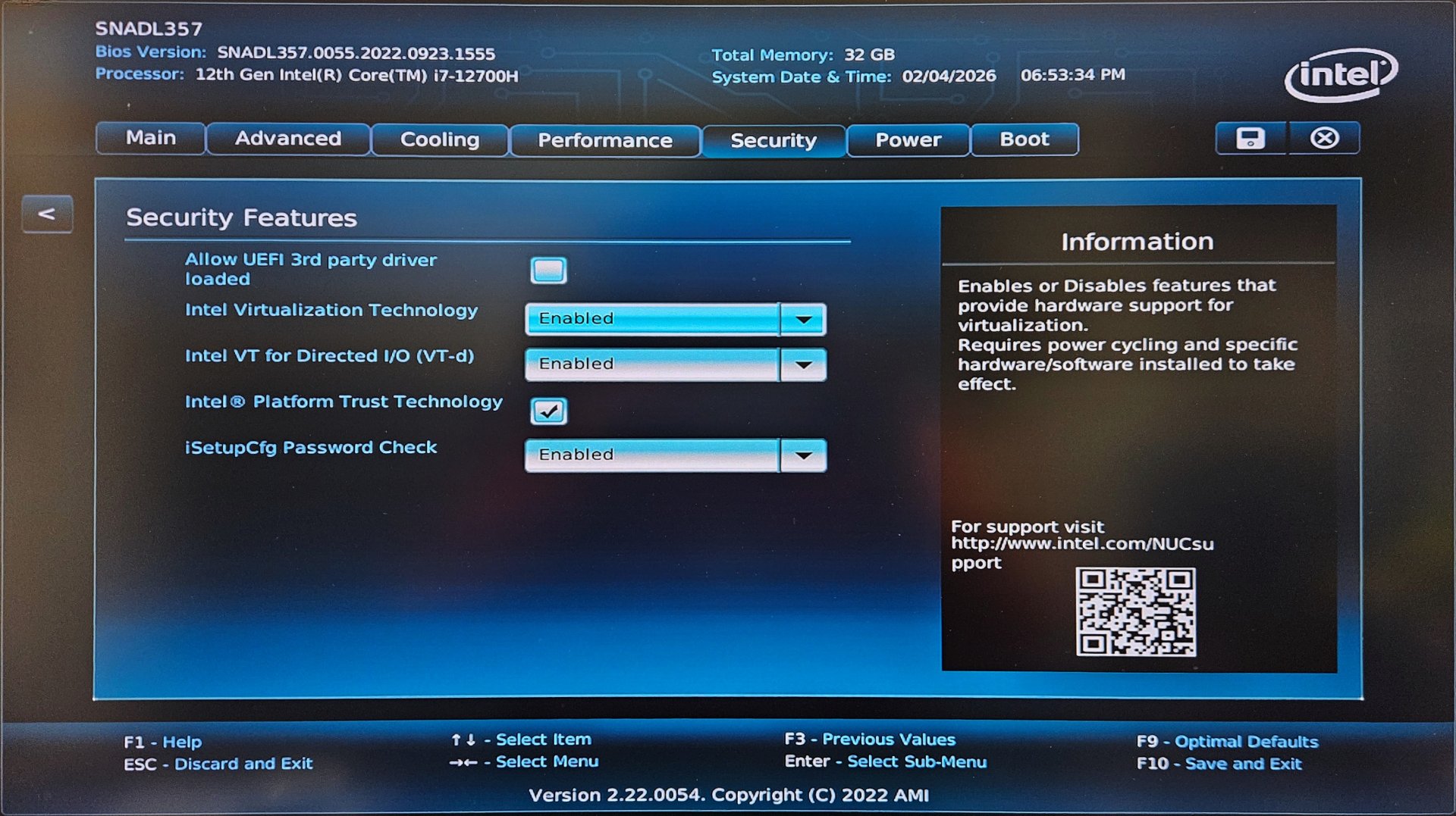 Rozhranie každého výrobcu tiež vyzerá inak. Osobne vlastním PC Intel NUC, kde sa po stlačení klávesu F2 bezprostredne po štarte počítača zobrazí nasledujúce rozhranie: