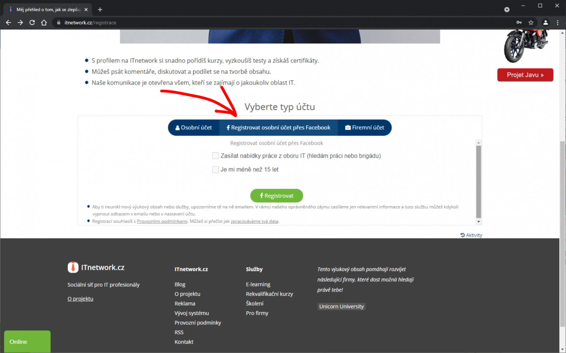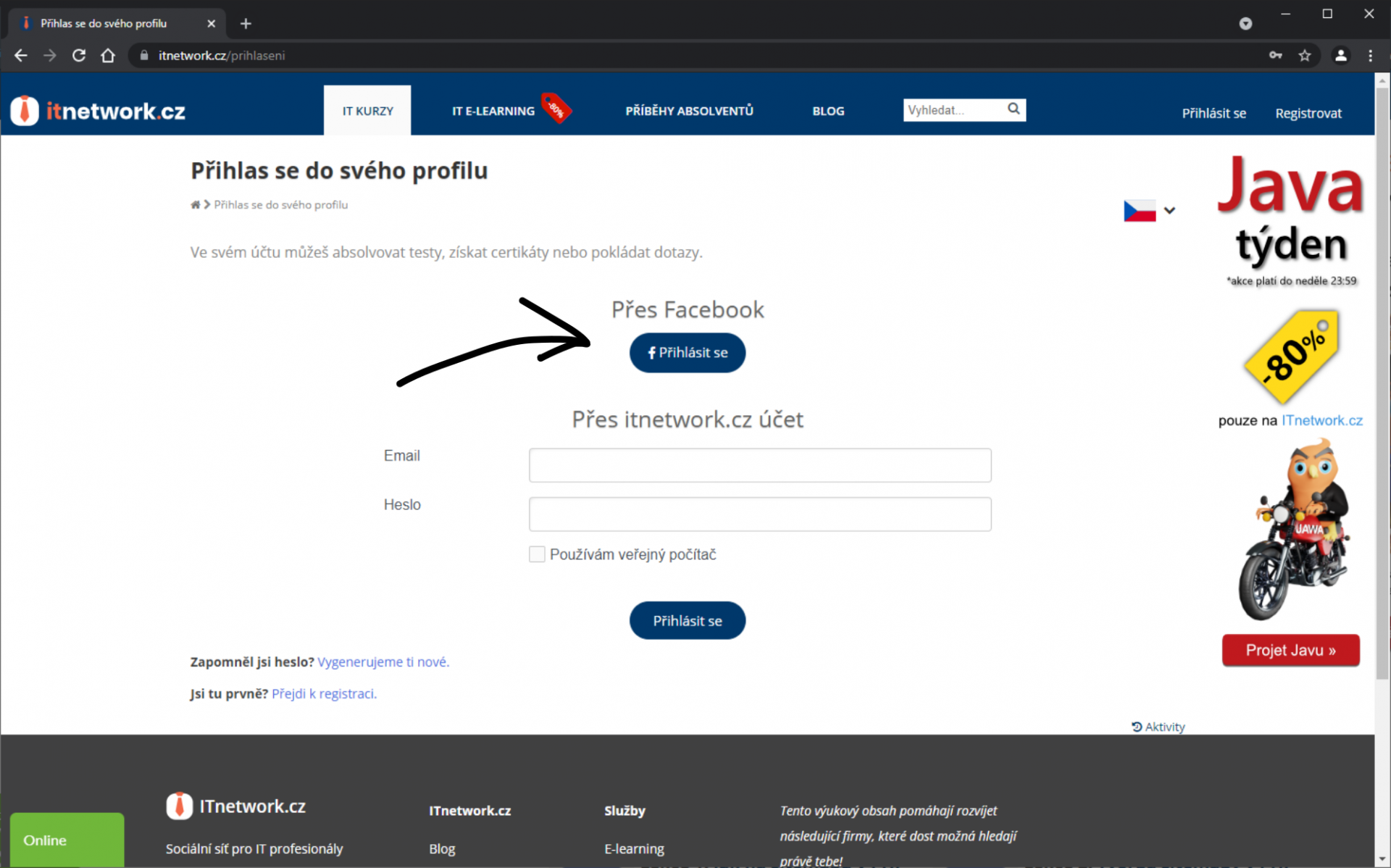 - Musíme mať založený účet na Facebooku