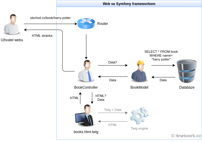 Ako už bolo povedané, Symfony je klasický MVC framework, takže je asi dobré si zopakovať, čo to vlastne znamená.