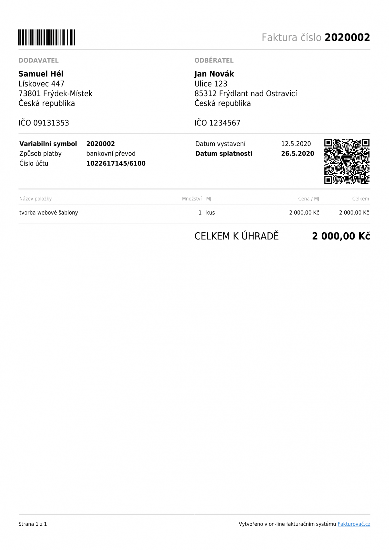Faktúru môžeme vystaviť napríklad cez webovú aplikáciu fakturovac.cz, ktorá je zadarmo. Často