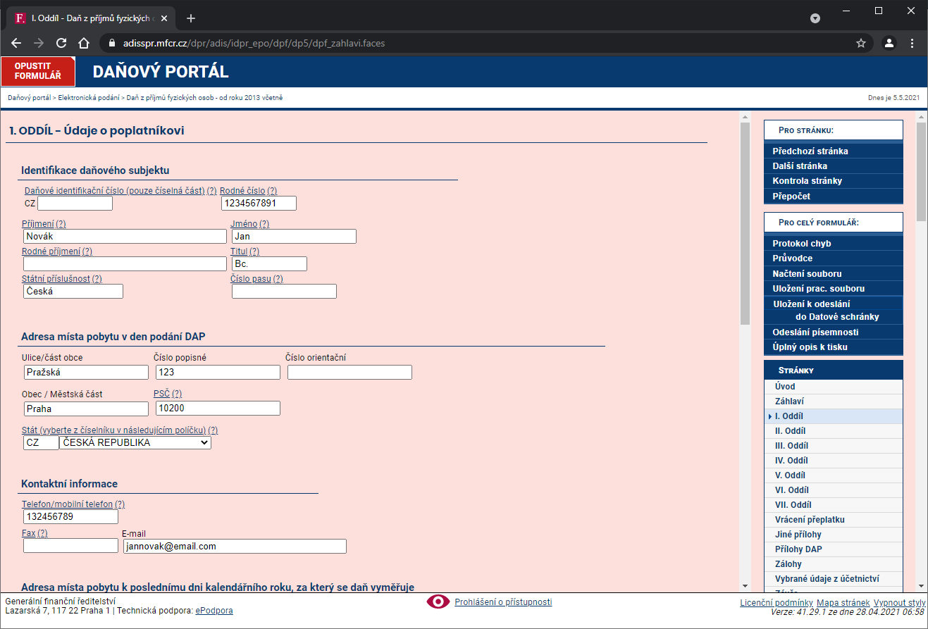 I. oddiel - Údaje o daňovníkovi