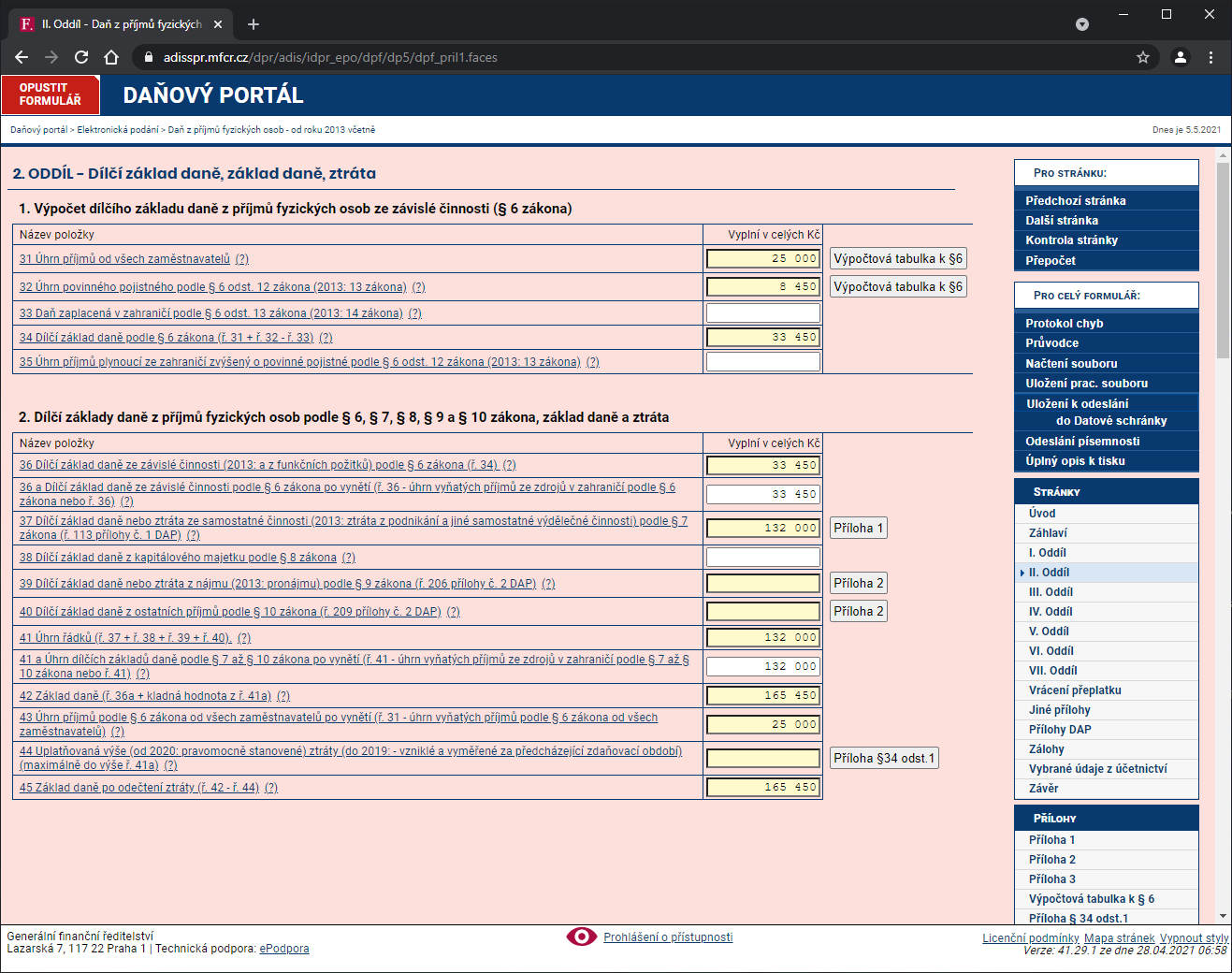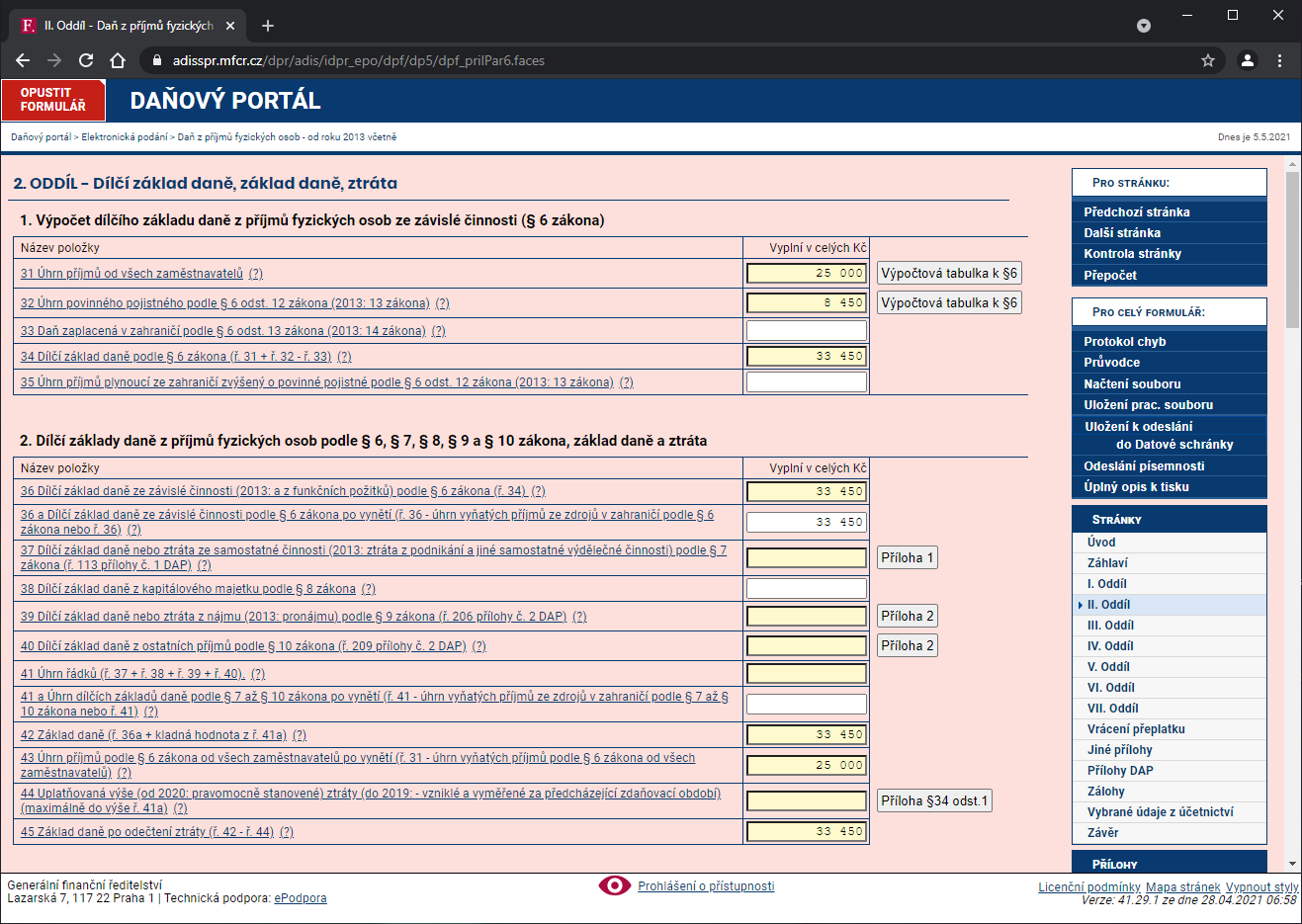 Klikneme vpravo v navigácie na tlačidlo Späť. II. Oddiel by sa nám mal dovyplnit: