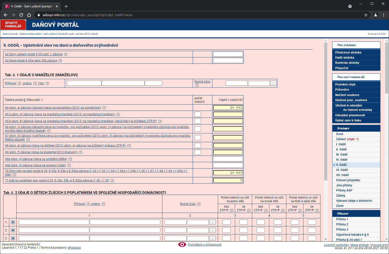 V. Oddiel - Uplatnenie zliav na dani a daňového zvýhodnenia