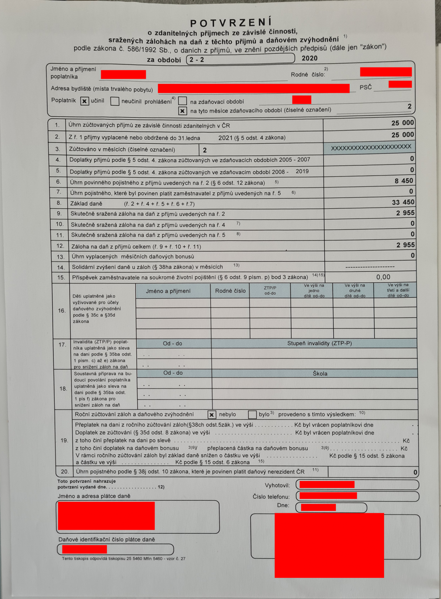 Ak ste boli v ten istý roku zamestnaní, je nutné od zamestnávateľa požiadať o dokument Potvrdenie o zdaniteľných príjmoch zo závislej činnosti, ak ste ho po výpovede nedostali. Zamestnávateľ je povinný tento dokument pre vás vyhotoviť. Ak ste začali podnikať od 1.1. alebo nepodávate prvé priznanie, tak sa vás to netýka.