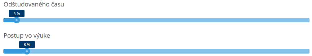 6. Ukazovatele progresu. Prvý ukazovateľ „Odštudovaného času“ ukazuje, koľko percent z celkovej dĺžky kurzu už ubehlo, zatiaľ čo druhý „Postup vo výučbe“ odráža tvoj reálny pokrok. Vďaka tomu budeš mať prehľad o svojom postupe.