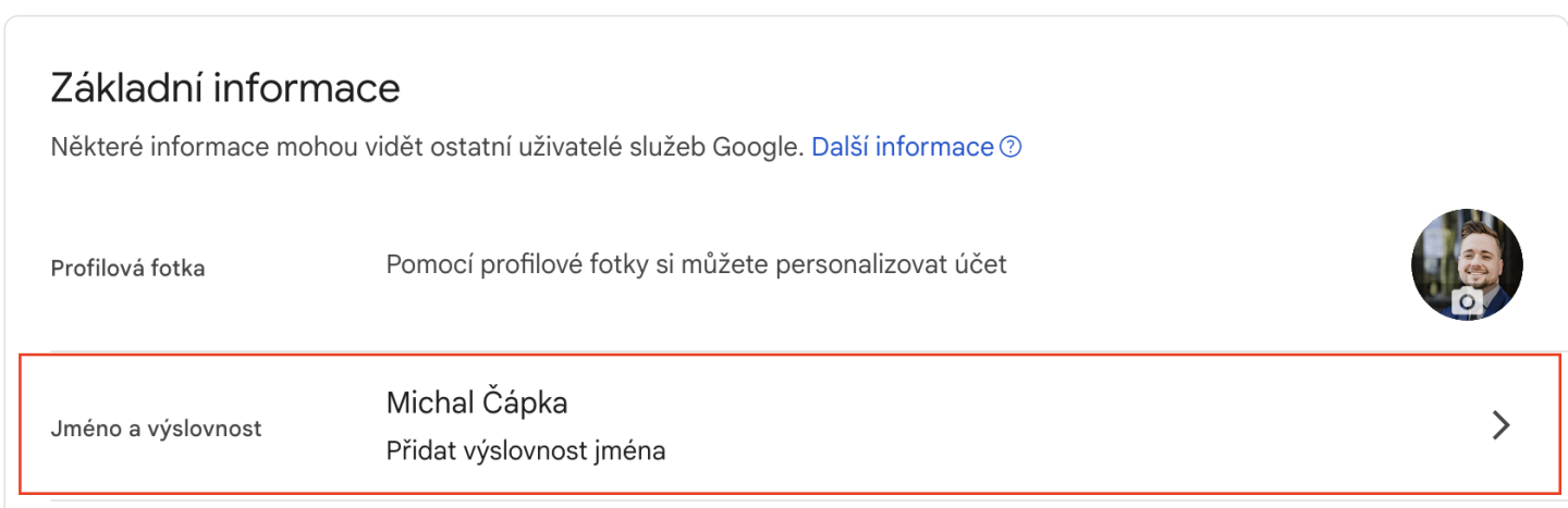 Z rovnakého dôvodu je nutné, aby každý účastník bol prihlásený svojim celým menom. Preto si v nastavení svojho G-mail účtu skontroluj, ako sa tvoje meno zobrazuje. Postup nájdeš tu: