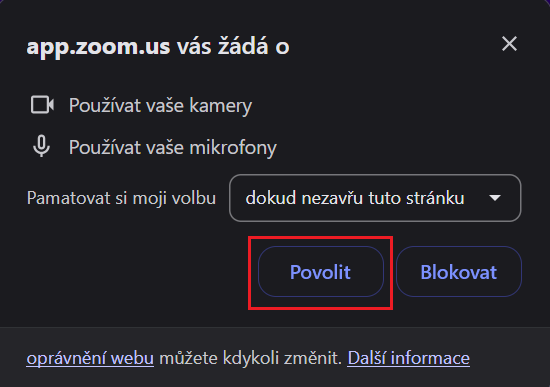Nezapomen povolit přístup k tvé kameře a mikrofonu.