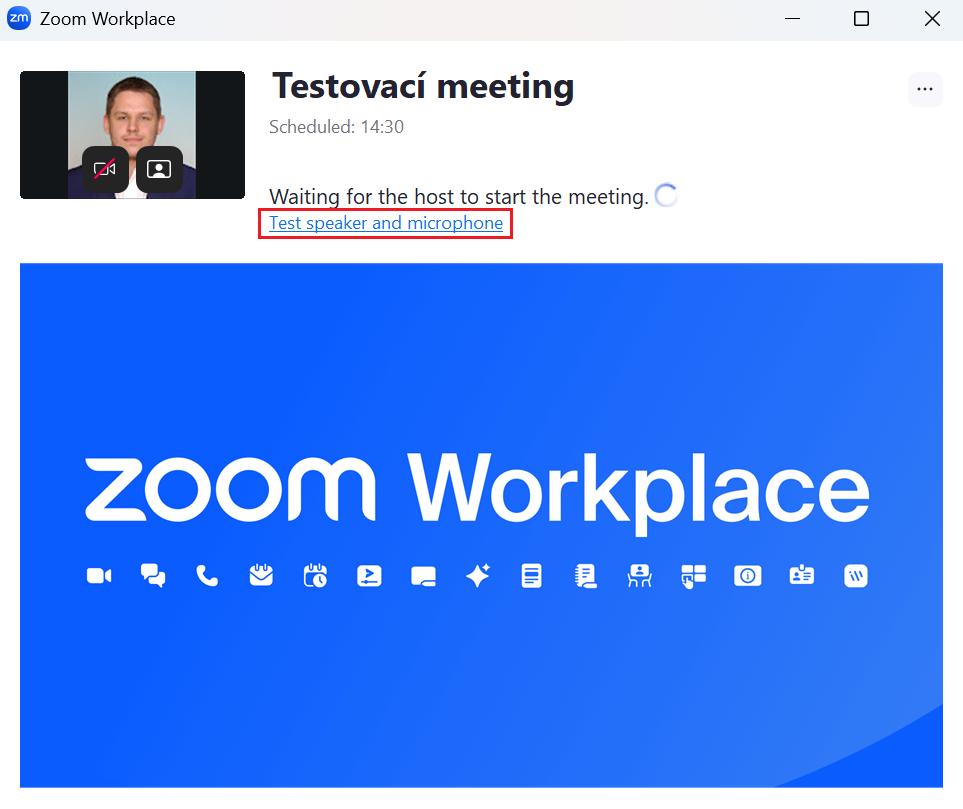 C. Teraz musíš počkať, kým ťa správca skúšky pustí na meeting. Neboj sa, ak to bude chvíľu trvať – môže sa stať, že skúšku ešte dokončuje predchádzajúca skupina a je potrebné počkať, kým ju dokončia.