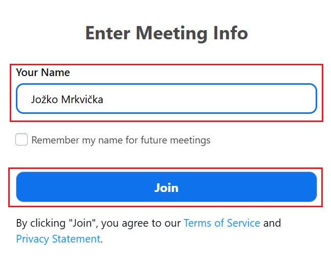Teraz už stačí iba zadať tvoje meno a môžeš sa pripojiť.