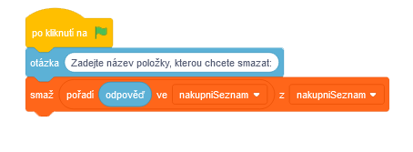 1. Na zmazanie konkrétnej položky slúži blok smaž
