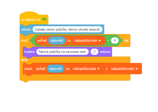 vložíme blok odpoveď. Celý blok potom vložíme do bloku smaž