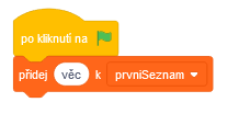 Aby sme pridali do zoznamu prvok, použijeme blok pridaj k. Poďme blok nalepiť k štartovému bloku:
