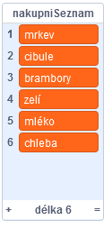 nakupniSeznam, do ktorého si pridáme niekoľko položiek: