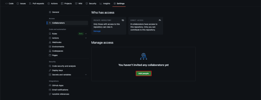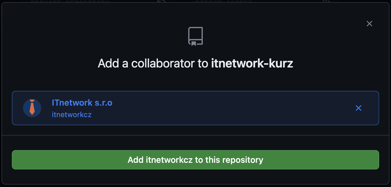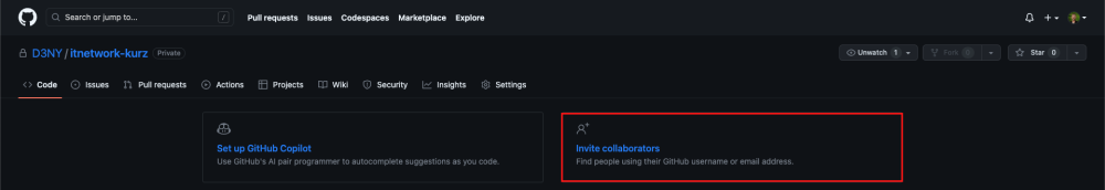 Po vytvorení repozitára klikneš na Invite collaborators: