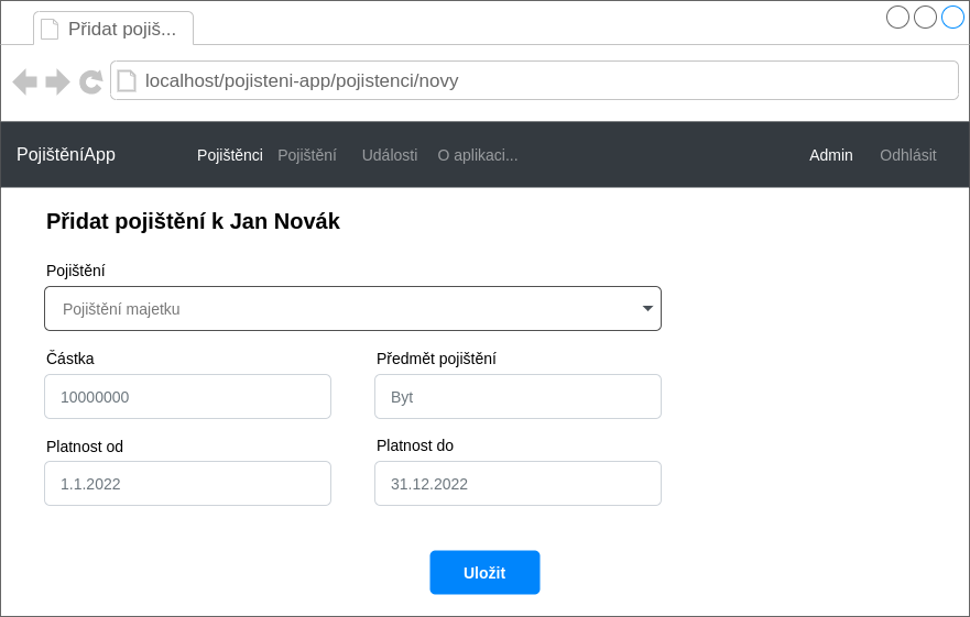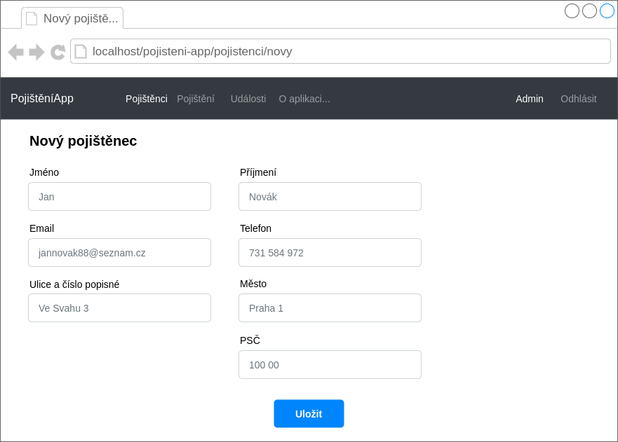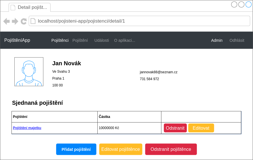 - Aplikácia obsahuje kompletnú správu (CRUD) poistených