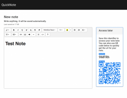 Môj "víkendový" projekt. Predstavte si situáciu, že ste u verejného PC (napríklad v škole alebo knižnici) a chcete si zapísať poznámky. S QuickNote vám stačí otvoriť stránku, začať čokoľvek písať (vrátane formátovania a obrázkov) a potom si len uložiť kód poznámky, aby ste sa k nej neskôr dostali.