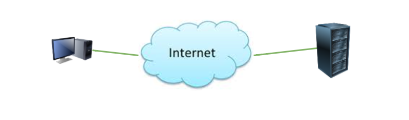 Ak riešime komunikáciu medzi dvoma zariadeniami (tu PC -> server) na úrovni protokolov (spracovanie, zostavenie paketov a rámcov), tak nás nezaujíma, koľko sa medzi nimi nachádza routerov, cez aké káble komunikácie prechádza, a pod. - proste predpokladáme, že si dáta cez Internet cestu samy "nájdu". Preto sa sieť routerov znázorňuje týmto spôsobom - ako "Internetový obláčik" (nepleťte si to s cloudovým úložiskom!).
