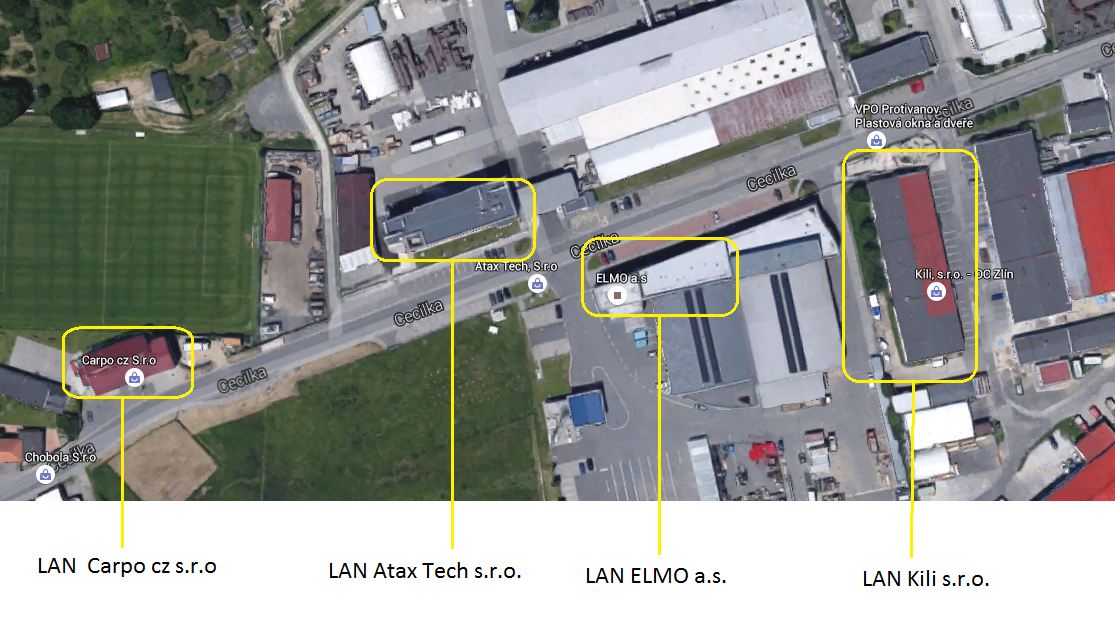 Najzákladnejším stavebným blokom Internetu sú LAN (local area network). Ako LAN sa označuje počítačová sieť, ktorá pokrýva malé územie. Najmenšie LAN sú tie v domácnostiach (2 - 5 zariadení), tie najväčšie spájajú treba niekoľko firemných budov (tisíce zariadení). Tiež môžeme povedať, že je to sieť, ktorá má jedného majiteľa (domáca sieť - rodina, firemnú sieť - spoločnosť). Na mape by mohli vyzerať takto: